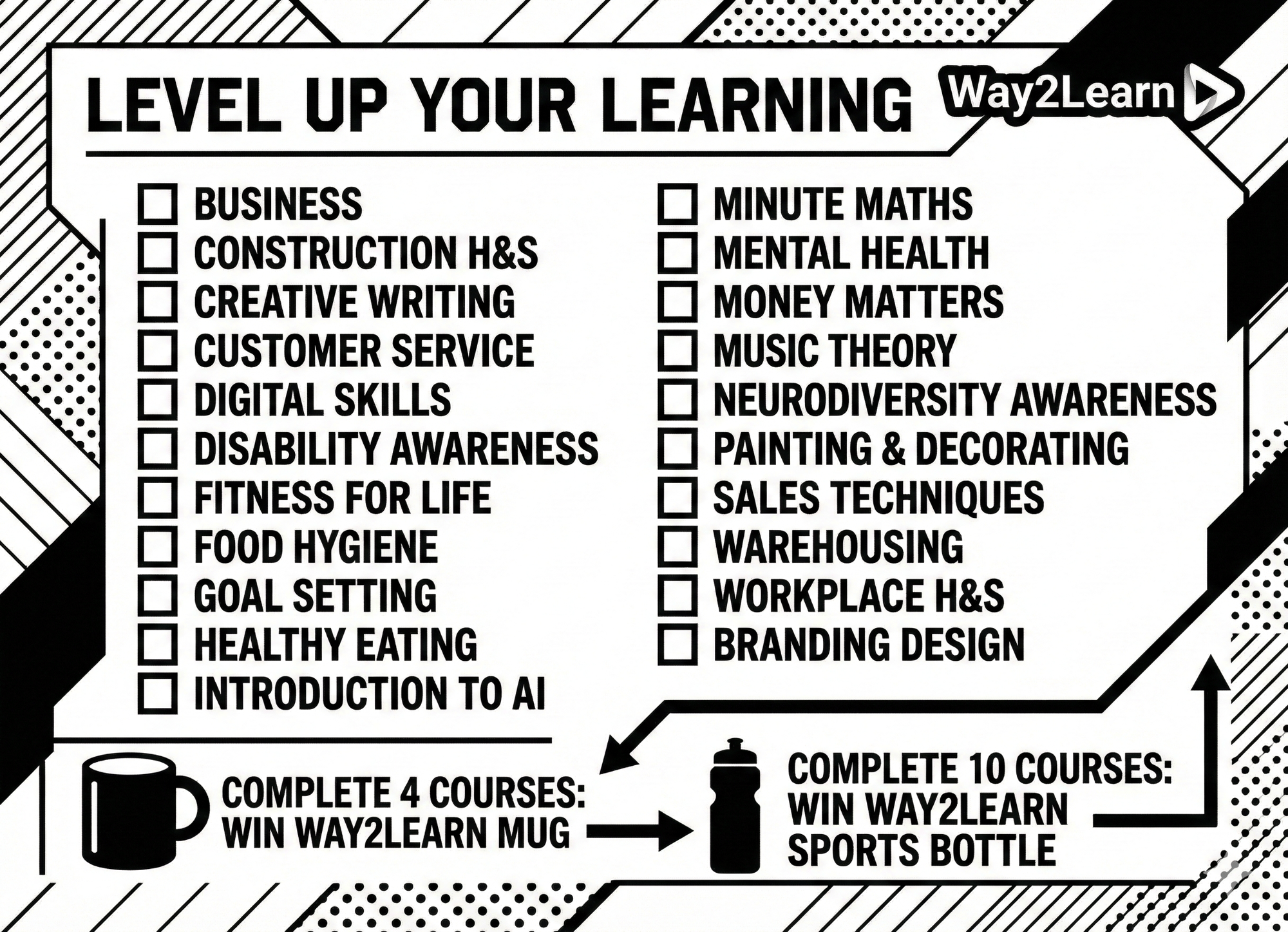 Way2Learn is a flexible, video-based learning platform designed for people who face barriers to traditional training and education. Our bite-sized courses can be accessed in secure settings, at your own pace, with minimal staff input.